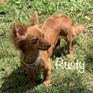 Rusty was in the second group of pups to arrive at Almost Home Foster MN License #132328. Rusty, along with his brother Walter, had a little different Breeding background. Momma is a Shih Tzu/Poodle mix and his Poppa is a Chihuahua/Dachshund mix. Rusty took on the “look” of his Poppa, a Chihuahua/Dachshund mix, but with his momma’s longer hair…he has a striking, “good looking dog” persona. However, Rusty’s trust of people was slow to come around. We played the catch-me-if-you-can game nightly. Once securely resting in one’s arms, he was quick to relax and just enjoy the cuddles.